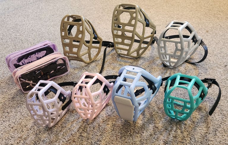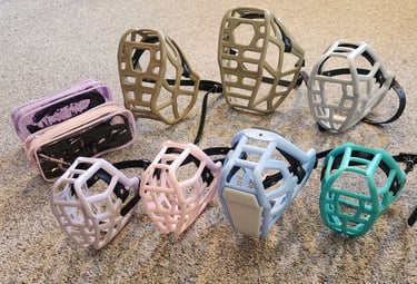 Muzzles are a great tool for every dog to know and love. Do you have a dog who needs a muzzle for safety, preventing scavenging, or post-surgery management and you want the best for them? I'm here for you with a full set of baskets from The Muzzle Movement. If you choose to purchase through my affiliate link you will get a %10 discount and I will get a little TMM credit to keep my kit up to date.